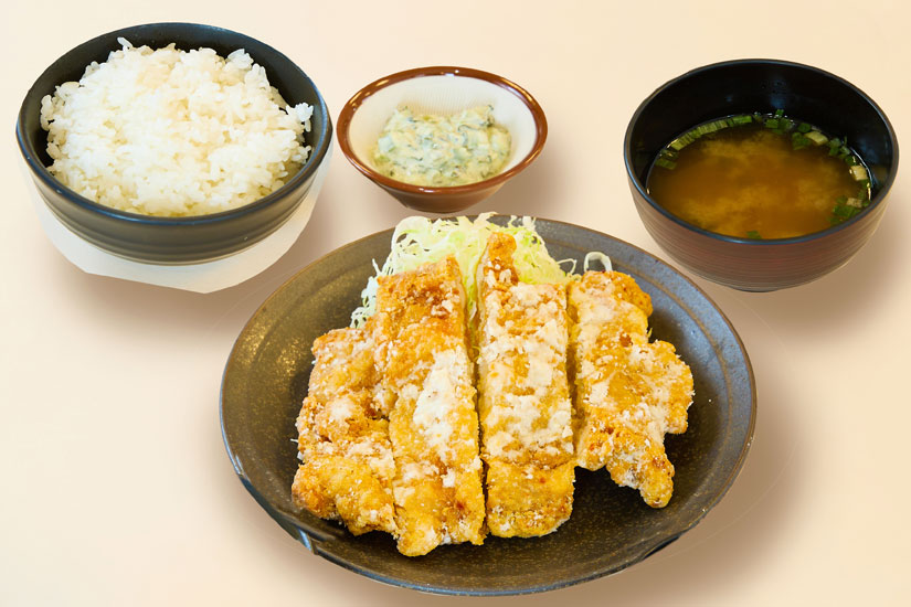 信州名物の山賊焼きに、野沢菜漬けを使った手作りディップを添えた定食です。カリッとジューシーな鶏肉に、野沢菜のさっぱりとした風味が重なり、信州らしい味わいが楽しめます。