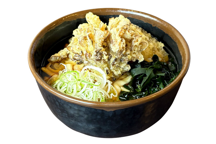 肉厚で風味豊かな群馬県産舞茸をサクサクの天ぷらに仕上げた一杯です。麺は群馬県産小麦を使った自家製うどんで、コシのある食感と小麦の香りが広がります。