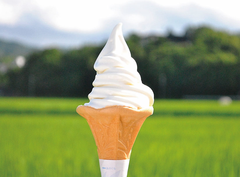 「オランチェ」で人気なのが、新鮮な野菜や山菜を1袋108円で購入できる名物コーナー「100円市」。お得な買い物を楽しもうと、毎朝オープン前から多くの人が列を作ります。取材時でも開店前から約50人が列を作り、夏のピーク時には150人以上が訪れるほどの人気です。一方の「信州中野いきいき館」には、中野市の農家が丹精込めて育てた高品質な農産物が豊富にならびます。なかでも注目は、オブセ牛乳と季節のフルーツソースで作るジェラート。地元産フルーツの旨味をぎゅっと閉じ込めた、ここでしか味わえない一品です。