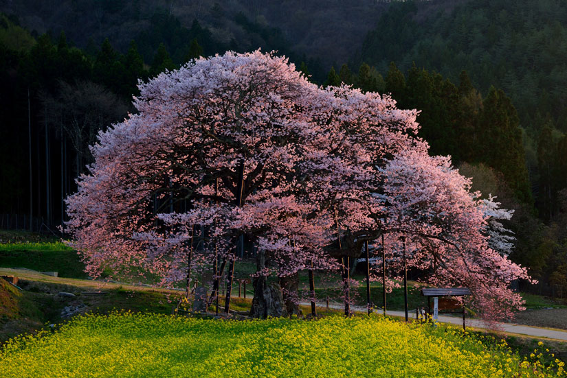 自然豊かな高山村では4月中旬より桜が見頃を迎えます。「信州高山五大桜」と称される5本の桜を含め、約20本のしだれ桜が点在。日本彼岸桜見立番付で西小結に選ばれた「坪井のしだれ桜」をはじめとし、「水中のしだれ桜」、「黒部のエドヒガン桜」、「赤和観音のしだれ桜」、「中塩のしだれ桜」とそれぞれが情景に彩りを添えています。