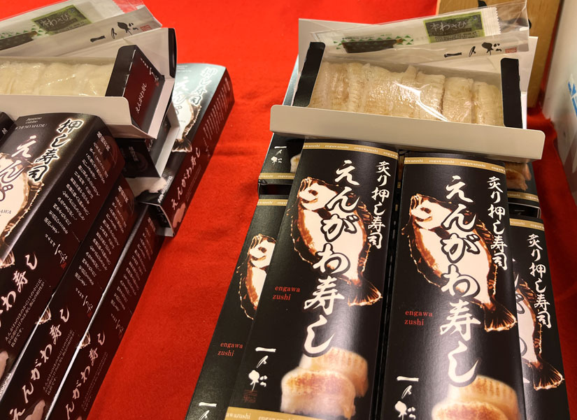 めずらしい、えんがわの炙り押し寿司と押し寿司もありました。