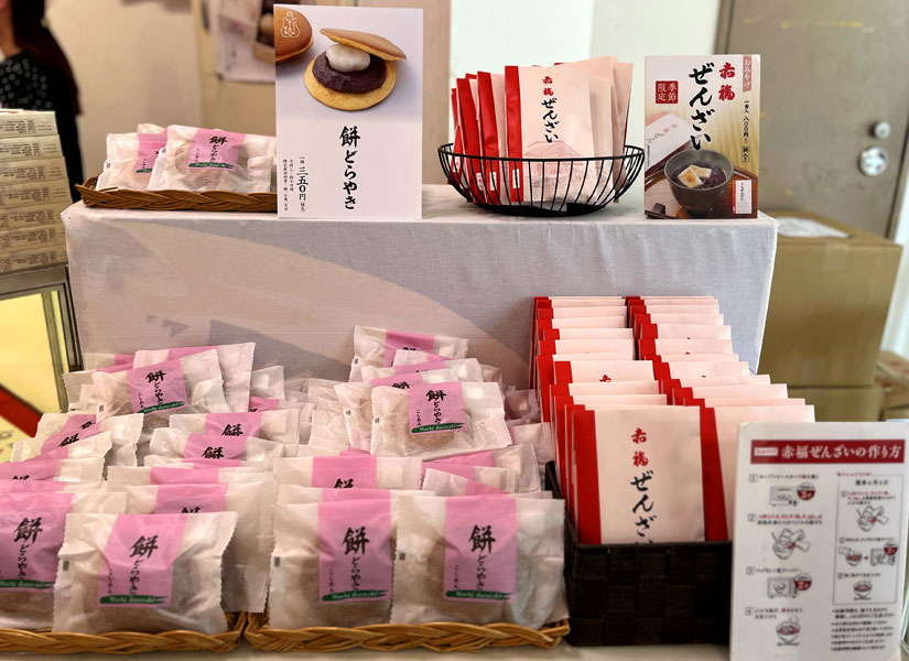 定番人気の「赤福餅」と「白餅黒餅」に加え、「餅どらやき」「赤福せんざい」も登場。