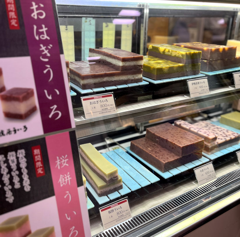 「伊勢茶栗ういろ」「栗ういろ」「小倉ういろ」などの生ういろに加え、期間限定「おはぎういろ」「桜餅ういろ」も!