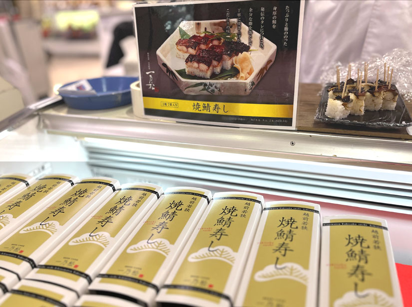 福井県産米を使用。厳選した脂がのった鯖を秘伝の醤油タレにつけ混み焼き上げる「焼鯖寿し」が評判の日本料理店。身厚の鯖をしっかりと堪能できる逸品です。青魚特有の臭みも感じることなく、美味しかったです!