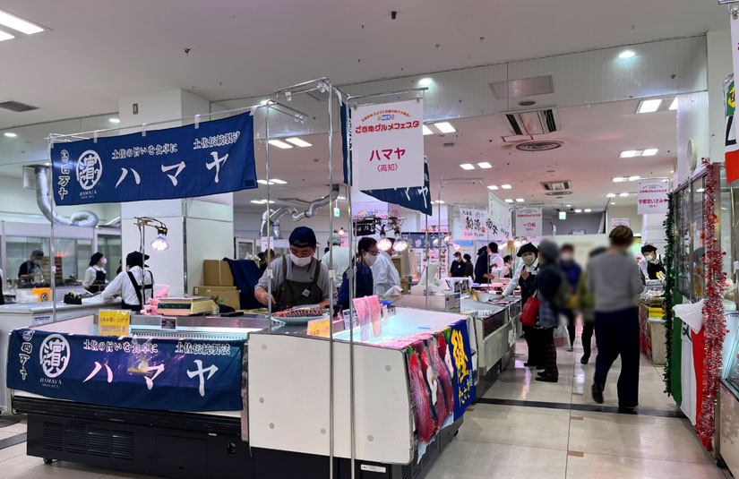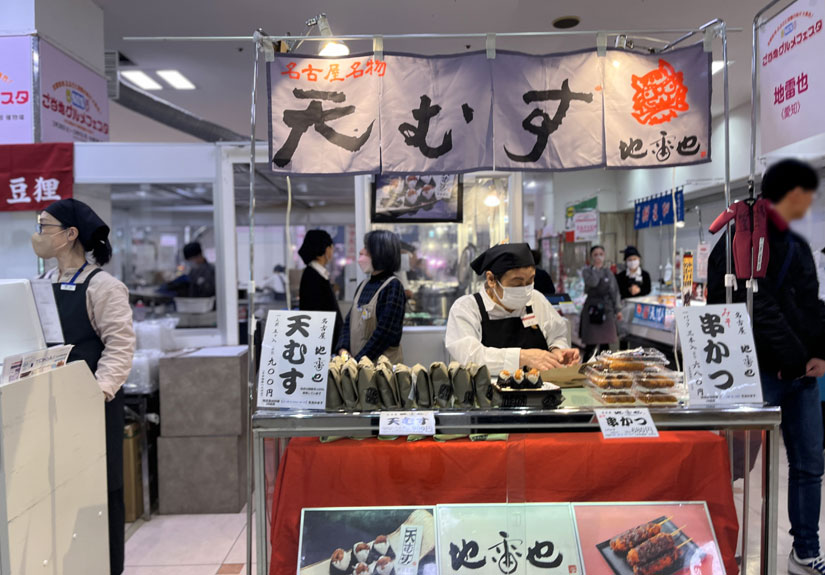 大阪府〈豆狸〉の「ソースかついなり」、愛知県〈地雷也〉の「天むす」、〈北海道かぶき者〉のタコの唐揚げ、三重県の〈赤福〉の赤福餅、〈虎屋ういろ〉の生ういろ、北海道〈王様の工房〉のアップルパイなど、全国のうまいものが集まる会場を取材させていただきました。