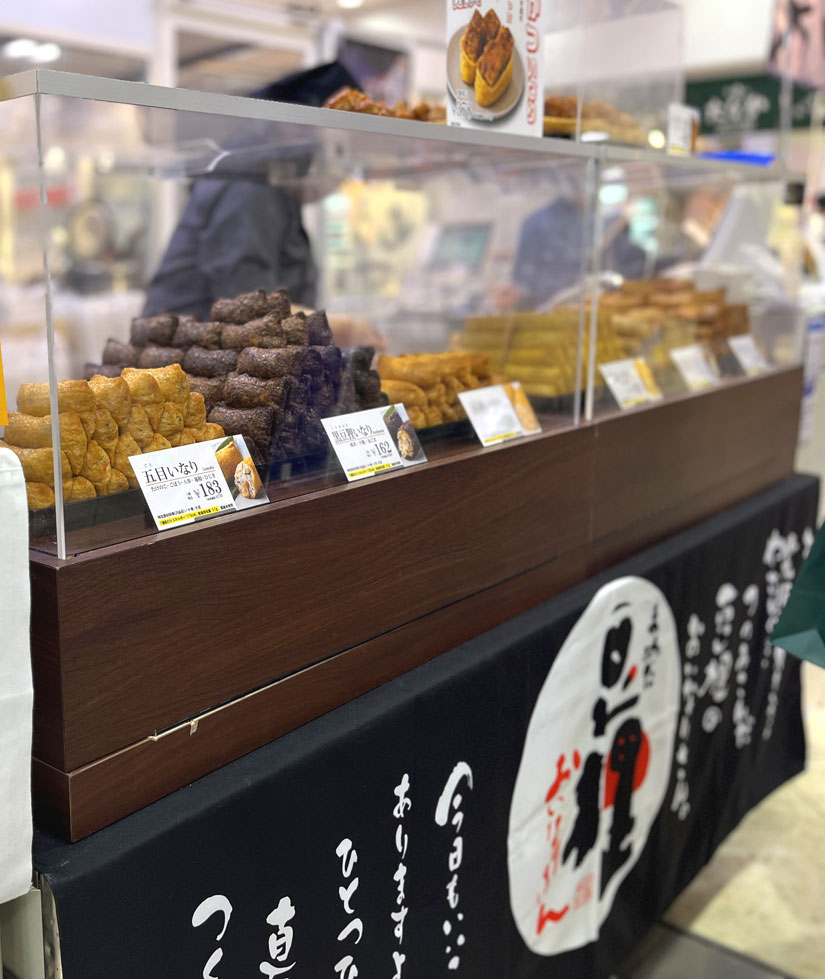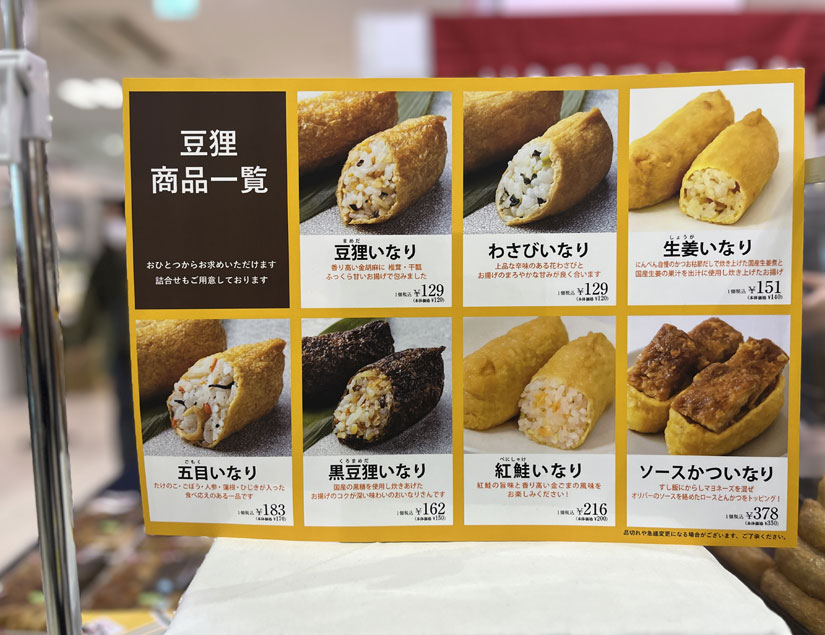 看板商品「豆狸いなり」に加え、わさびや紅鮭などもそろいます。