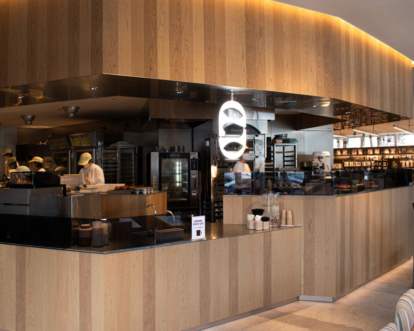 店内にはオープンキッチンを設置。焼き上がる香り、仕上がっていく工程を間近で見られる臨場感も魅力。