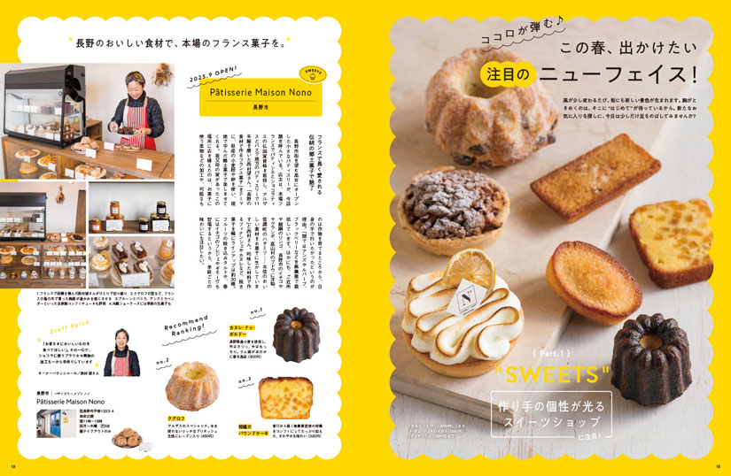 季節が少しずつ替わりはじめると、心もそれに合わせて動きだします。暖かくなり、気持ちが前向きになるこの時期は、どこへ行こうか、何をしようか、あれこれ考えるだけで楽しいですよね。そんな新しい季節のはじまりのワクワクに寄り添うように、“おいしい時間”を探しに行きたくなる特集を、ぎゅっと詰め込みました。注目の新店をはじめ、信州のケーキ図鑑、訪れる時間によって表情を変えるカフェ、そしてフォトジェニックなオープンサンドまで。心がふくらむ甘い時間と、香ばしい香りをお届けします。