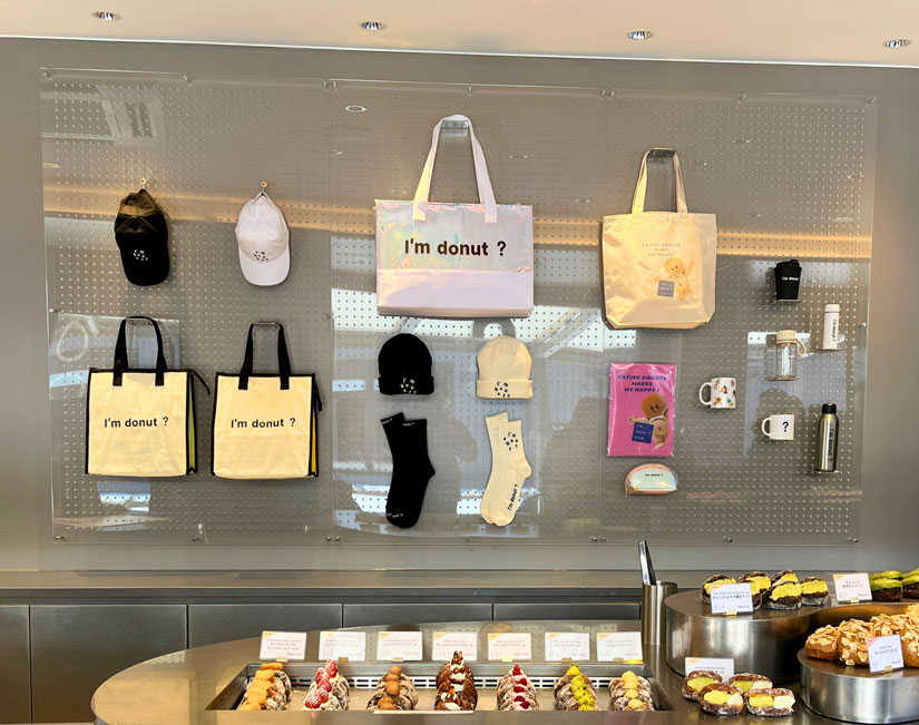 ドーナツが並ぶほか、オリジナルグッズも販売。