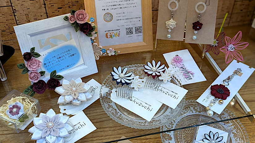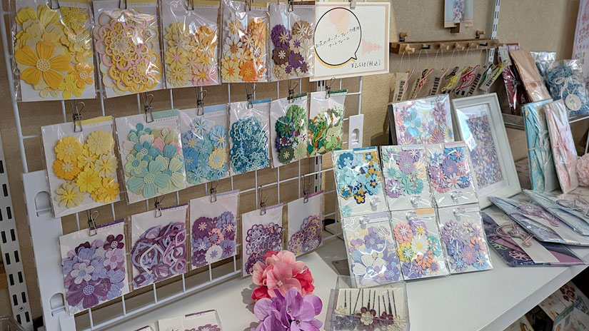 「編み物や布小物、レザークラフト、クラフトバンドなどの手芸品ほか、ペーパークラフトやアート作品、つまみ細工や自然石アクセサリーを含むアクセサリー類、レジン小物、インド刺繍リボン雑貨などが多いですが、精巧なミニチュアフードや人気の多肉植物なども取り扱っています」と佳代子さん。