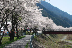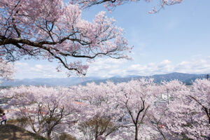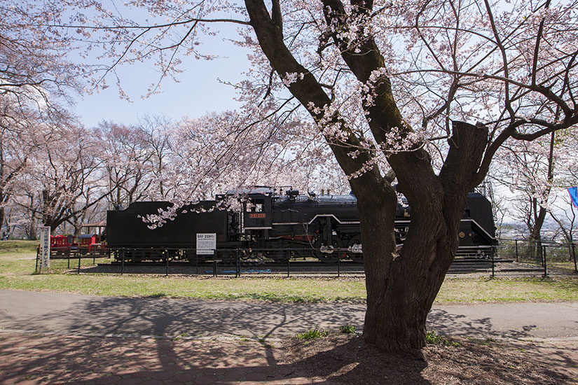 長野県伊那市の市街地から天竜川を渡った東側、段丘上に広がる桜の名所「伊那公園」。園内では、約280本のソメイヨシノやコヒガンザクラが美しく咲き誇ります。公園内にはデゴイチ(D51機関車)の展示があり、複合遊具を備えた児童公園も併設。さらに、市営プールなどの施設も整い、総合公園として多くの家族連れに親しまれています。