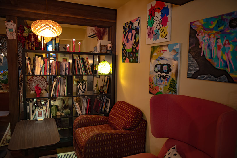 さまざまなアートと出合えるのも魅力のひとつ。上山さんの友人のアーティストが制作した作品なども展示されています。展示作品は不定期で入れ替え。