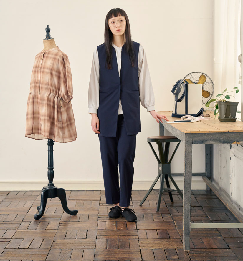 新生活やちょっときちんとした場面に向けて注目したいのが、新製品の「ハレナリー」です。コンセプトは、特別な日(ハレの日)にも、日常(Ordinary)にもなじむ服。ラインアップは、「ハレナリージャケット」(1,900円)、「ハレナリーペプラムプルオーバー」(1,280円)、「ハレナリータックパンツ」(1,780円)など。