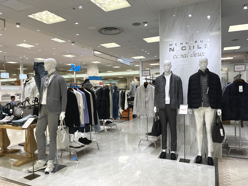 「井上百貨店」の1階の婦人服エリアは、食品売場に隣接。