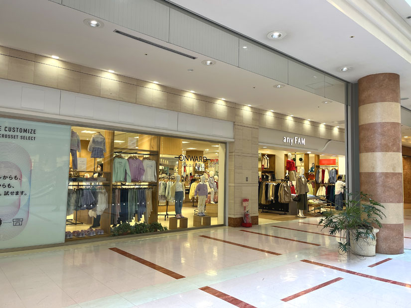 「井上百貨店」エリアと専門店エリアの1階と2階に、きれいめカジュアル・オフィスファッション、フォーマルなど、さまざまな婦人服のお店がそろいます。