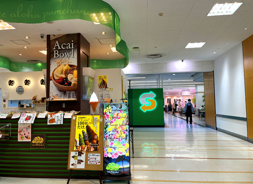 落ち着いたイートイン空間が設けられ、ジェラート店やラーメン店などが並びます。