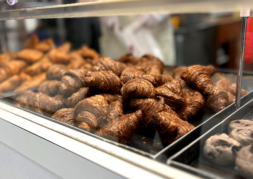 大人気ベーカリー「DONQ(ドンク)」!看板商品のミニクロワッサンを筆頭に、チーズケーキなどが並びます。