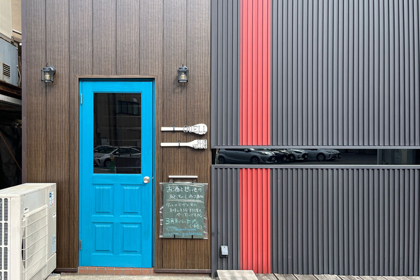 青い扉が目印の同店。店名は、ドイツ語で泉・源泉を意味するQuelle(クヴェレ)が由来。「私の苗字に入っている井戸の『井』にも繋がっています」と、石井さん。