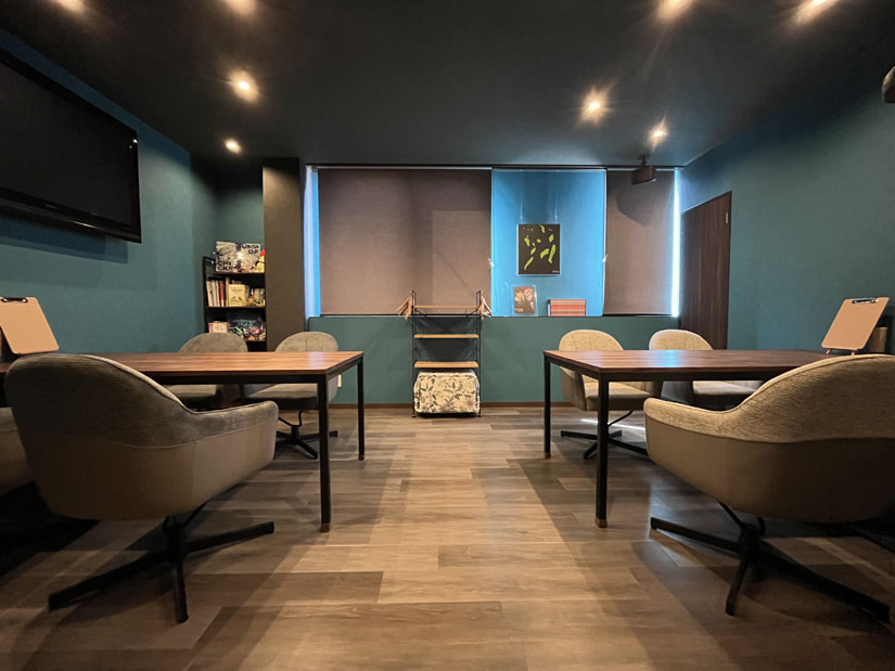 店内は鮮やかな青を基調とした落ち着いた雰囲気。