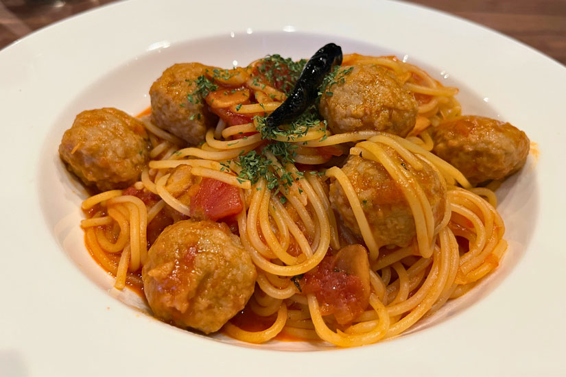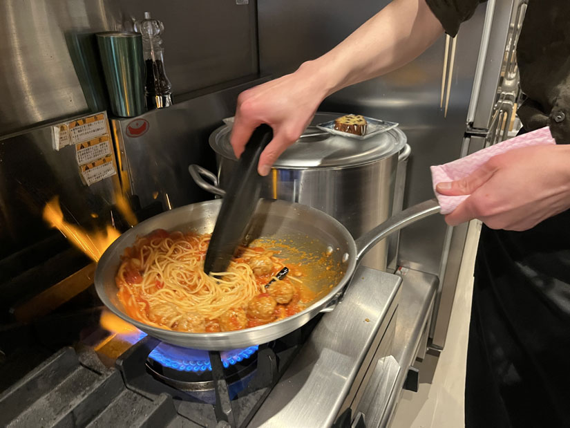 取材時には、『ルパン三世 カリオストロの城』でルパンが復活するために食べたスパゲティをイメージした「ミートボールパスタ」を特別につくっていただきました。