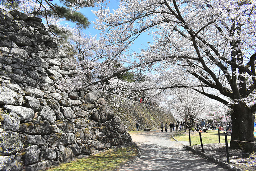 長野県小諸市にある「懐古園」は、かつての城跡を活かした風情ある公園。城下町より低地に築かれた“穴城”として知られており、国の重要文化財に指定されている三の門や大手門が残ります。また、日本百名城やさくら名所100選にも選定され、春にはソメイヨシノやヒガンザクラをはじめ、多彩な桜が園内を彩ります。