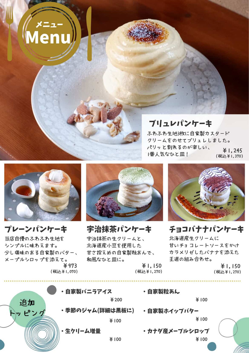 〈パンケーキのメニュー〉
