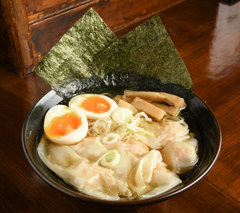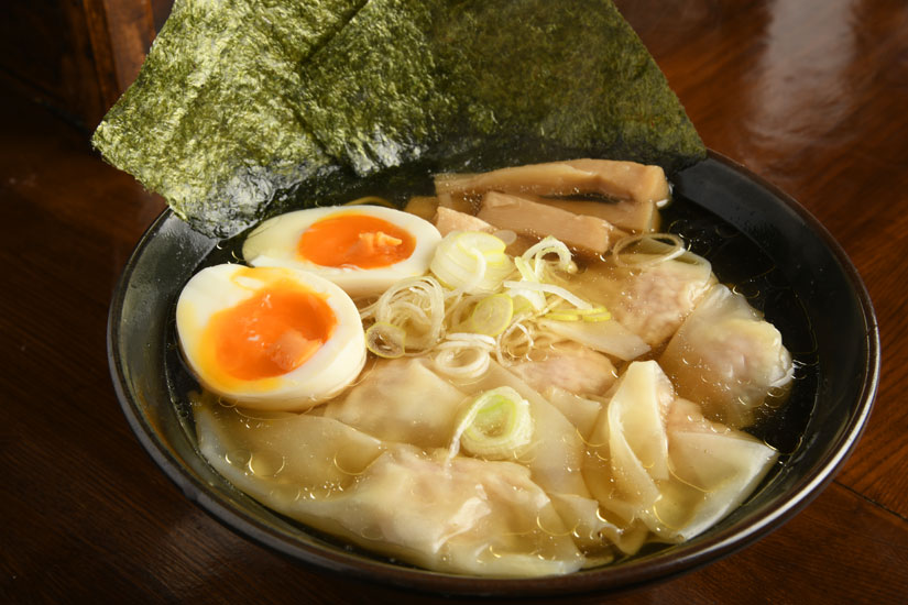 チャーシューの代わりにワンタンがたっぷり。自家製のワンタンは鶏モモミンチにショウガやオイスターソースを練りこんだ肉団子がぎっしりと詰まっています。ふんわりやわらかな肉と口の中でとろけるような皮の味わいが絶妙なバランス。ワンタンのやみつき食感にレンゲが止まりません。