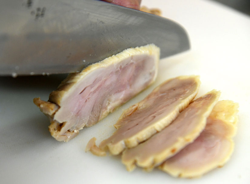 丸々の鶏モモ肉を使用し特製の塩だれに付け込んだ自慢の鶏チャーシュー。