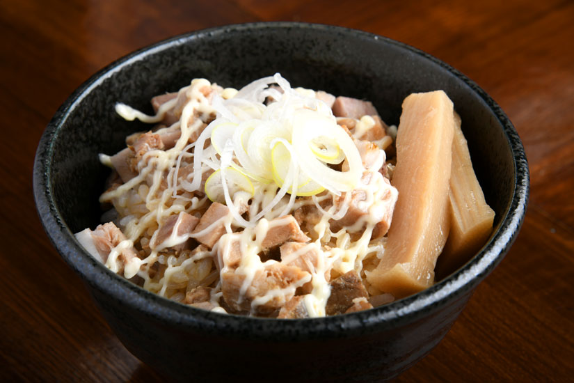 刻んだチャーシューがたっぷり。たまり醤油をベースにした甘だれがかかっていて、ご飯にもしみ込んでいます。ラーメンとの相性ももちろんよし!