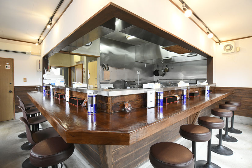 ▶カウンター席だけのラーメン店