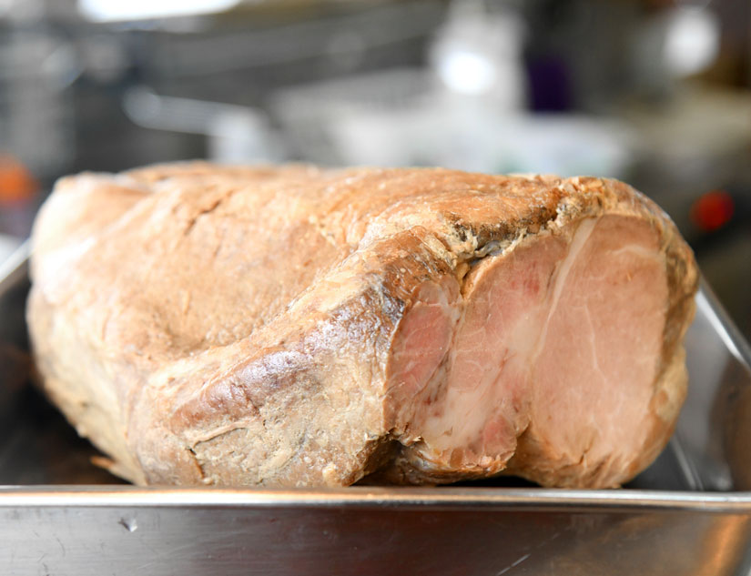 丸々1本の肩ロース肉の表面を焼いた後、特製のたれでじっくりと煮込んで仕上げた自家製チャーシュー。