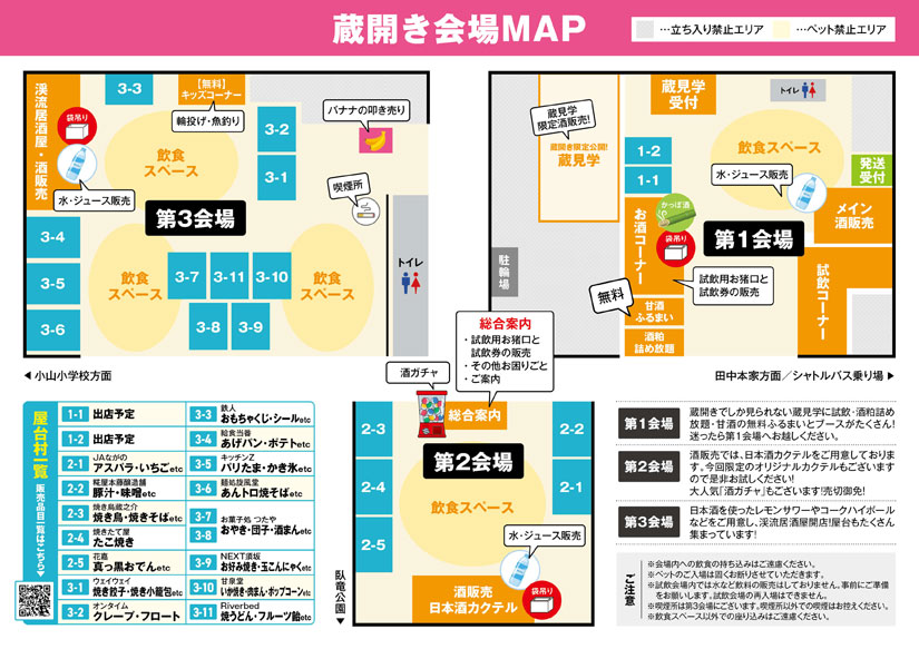 イベント開催期間中は「須坂駅」から会場の「遠藤酒造場 臥竜蔵」まで、無料シャトルバスが運行。車で来場する場合は「田中本家」駐車場を1台1日1,000円で利用できます。