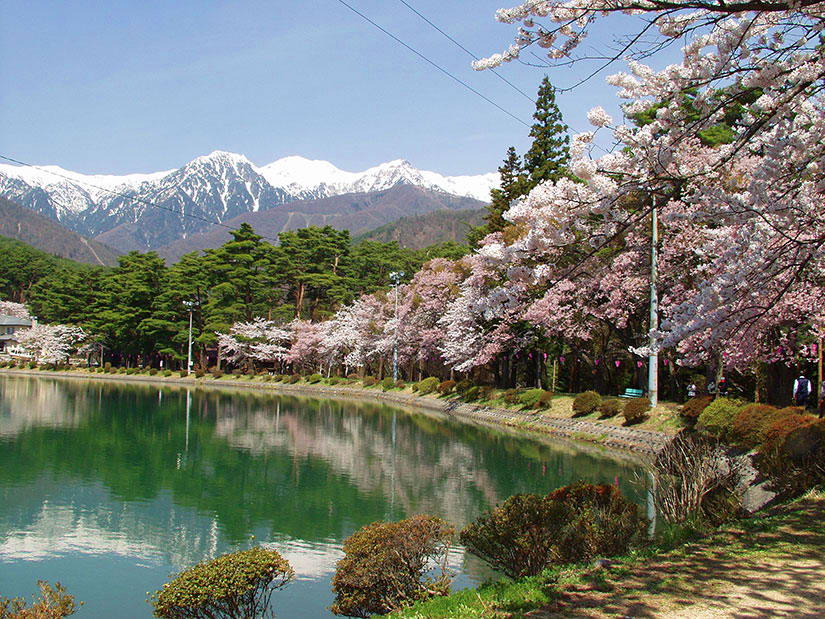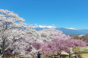 長野県上伊那郡飯島町にある「千人塚公園」は、中央アルプスの麓、標高約830メートルに位置する自然豊かな公園。南駒ヶ岳を望むロケーションに広がるこの地は、伊那路でも遅咲きの桜スポットとして知られ、春の訪れをゆったりと楽しめます。