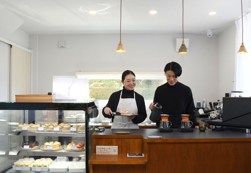 「祖母の土地に店を構えることができました」と洋菓子担当の清美さん。コーヒー担当の龍二さんとともに「いつかはイートインもできる空間を」と考えていたご夫妻の念願のお店。