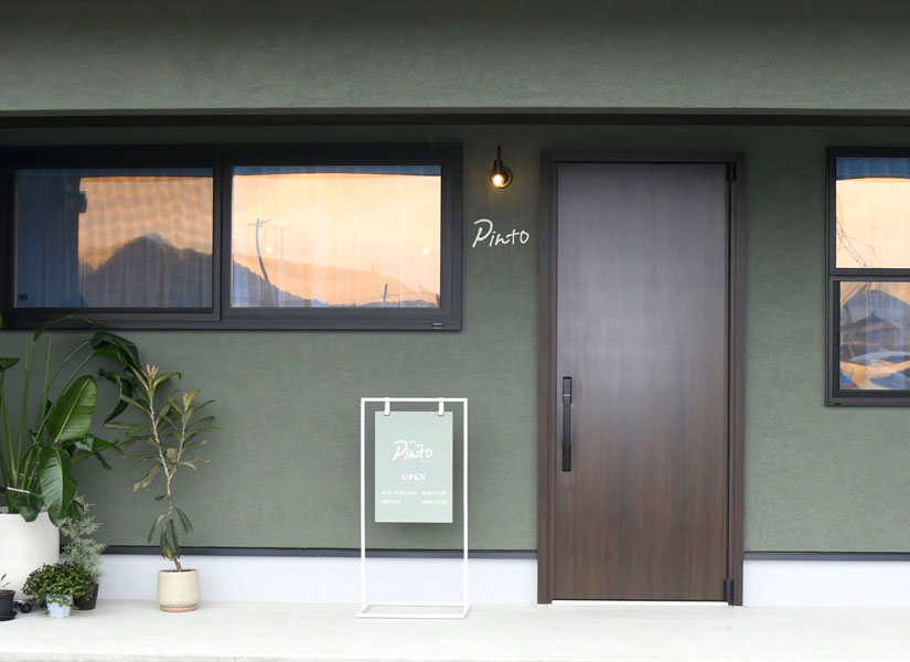 「休日はPintoに! と、ここを目的地にお店を訪れてもらえるような店にしたいです。お菓子やコーヒーはもちろん、店内の雰囲気や周囲に広がる四季折々の景観を楽しみながらゆったりと過ごしていってください」と板花龍二さんと清美さん。