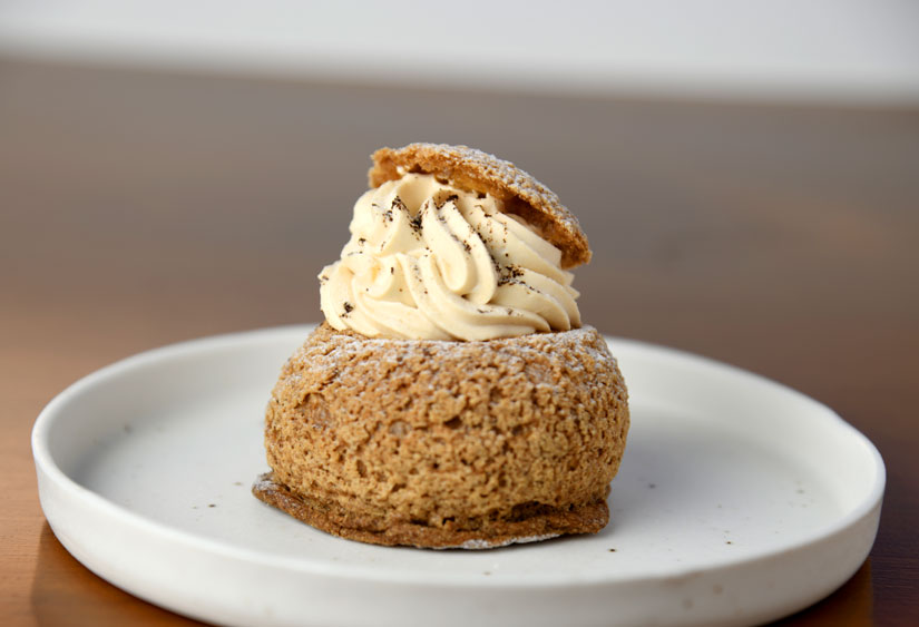クッキーシューには小麦粉でなく米粉を使用。無調整豆乳のクリームは甘さ控えめで軽い口当たり。