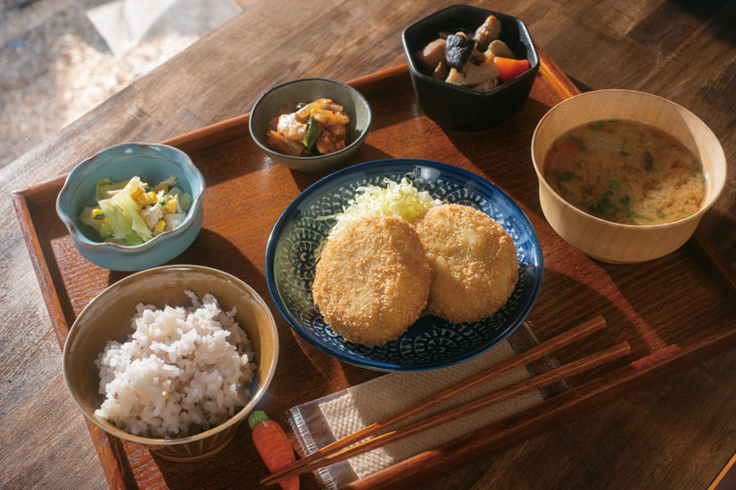 安心して口にできるよう「誰がどのように作ったか」が見える食材選びを徹底しており、さらに糀を活かした独自の仕込みにより、栄養価が高く冷めても柔らかでおいしい惣菜を実現。ゆったりとした店内では、これらの惣菜を主役にした「日替り膳」をはじめ、ひき肉とじゃがいもを増量した「コロッケ以上のコロッケ膳」、「鯖と高野豆腐のキーマカレー」など、栄養面も味にもこだわりを感じるメニューを提供。子どもからお年寄りまで、家族で利用できる食事処です。
