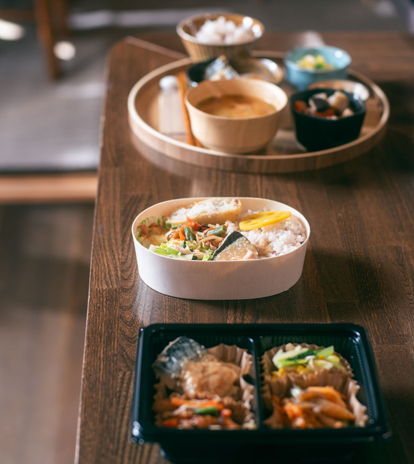 切り干し大根や筑前煮、鯖味噌など、滋味深い味わいのおかずをテイクアウトでもイートインでも堪能できます。