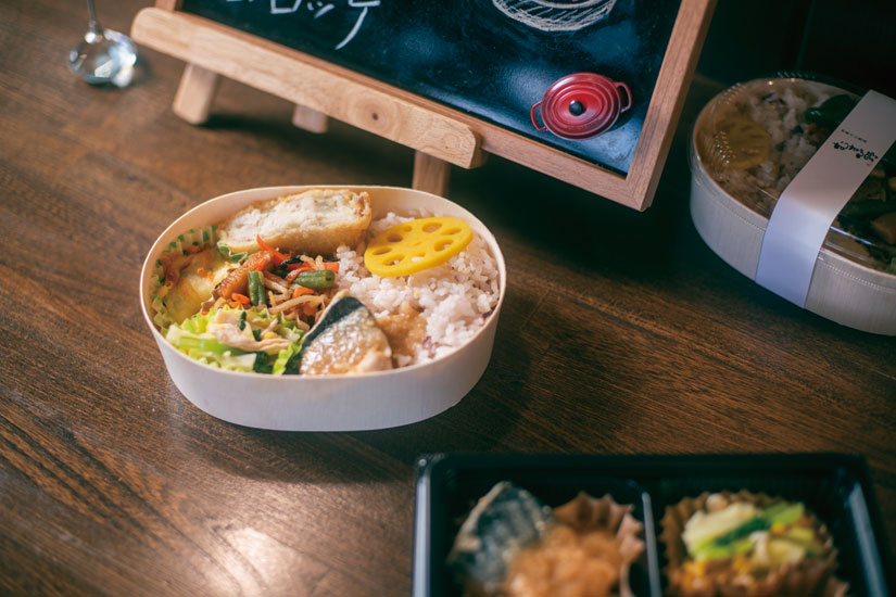 旬で新鮮な野菜を使用し、調味料まで全て手作りにこだわったメニューは、和食を中心とした野菜たっぷりの副菜のほか、米油で揚げた唐揚げやコロッケ、具だくさんの味噌汁やミネストローネなどさまざま。
