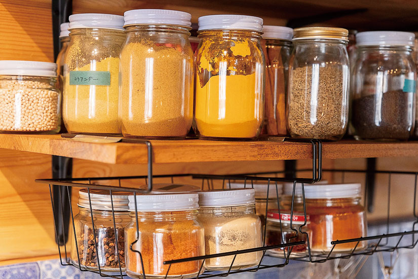 メニューごとに使い分ける約10種のスパイス。ビリヤニは華やかに、季節の野菜カレーは素材の味を生かすまろやかな味つけに。