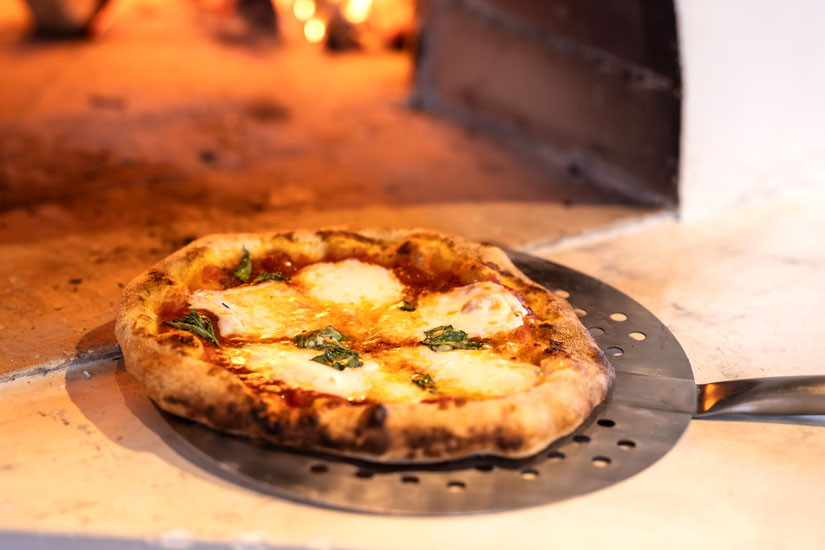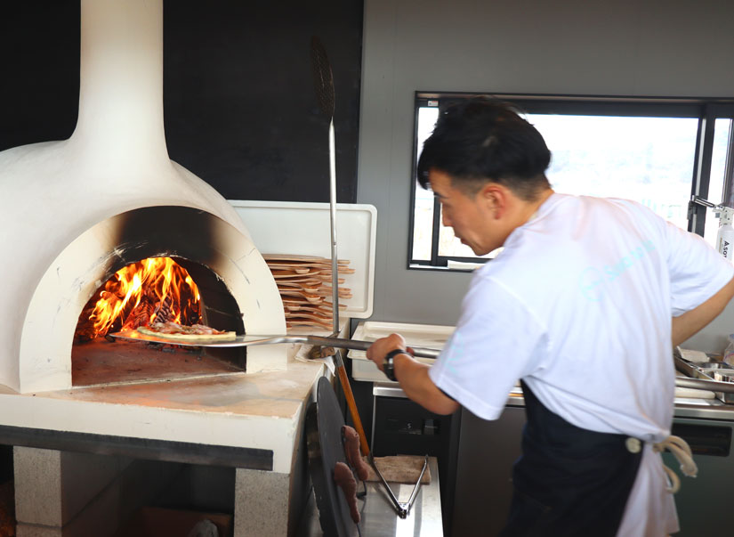 そんな茅野さんが手がける自慢のメニューは、店内の石窯を使い、約400℃の高温で一気に焼き上げる本格ピザ。店内で発酵させ、寝かせる時間にもこだわった生地は、驚くほどモチモチとした食感を楽しめます。