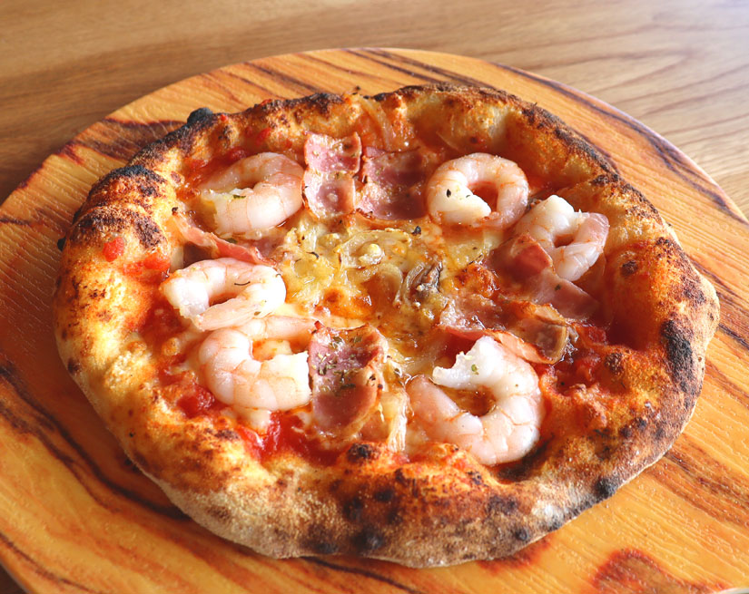 とくにおすすめの一枚は、大ぶりのエビにアンチョビ、ベーコンを贅沢に乗せた「ポルトフィーノ」(1,450円)。