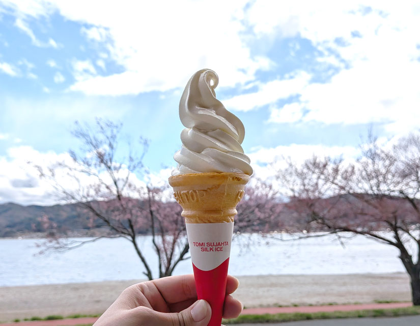 「長門牧場」直送の濃厚なソフトクリームや、香り高いコーヒーを片手に、諏訪湖畔をゆっくり散策するのもおすすめの過ごし方です。