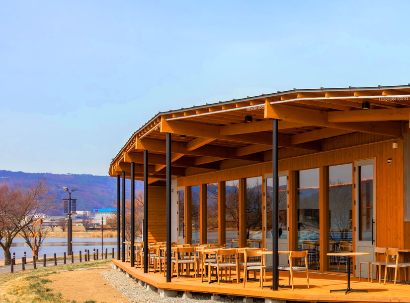 ▶諏訪湖の絶景を臨む空間、木の温もりが心地よい「街のサードプレイス」