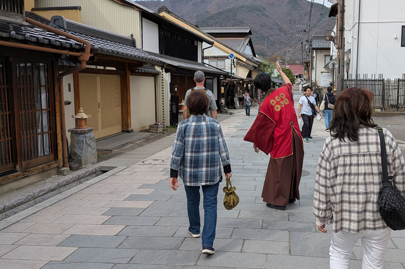 上田市の柳町エリアは、江戸時代の面影を残す歴史ある街並みが続く観光スポット。石畳の路地に伝統的な木造の店舗が軒を連ね、散策するだけでもワクワクするような場所です。そんな柳町で、地元の大学生たちが「柳町学生ガイド隊」として観光客を案内したり、一緒に記念撮影をしたりして盛り上げています。