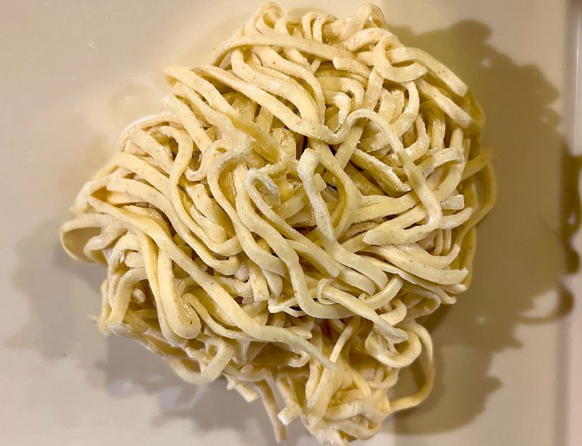 麺は、長野市の製麺所「セリタ食品」で特注した中太麺。濃厚な鶏白湯に負けない小麦の風味が感じられます。