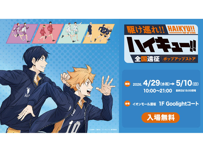 長野県・須坂長野東IC近くにある「イオンモール須坂」で、『ハイキュー!! 全国遠征ポップアップストア』が、GWを含む2026年4月29日(水・祝)~5月10日(日)にかけて開催。