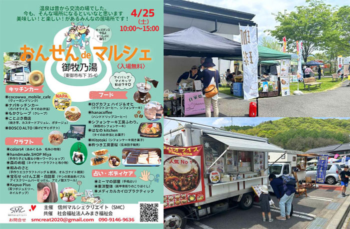 長野県東御市にある日帰り温泉「信州布引温泉 御牧乃湯」で、『おんせん de マルシェ@御牧乃湯』が、GWシーズンの2026年4月25日(土)に開催。