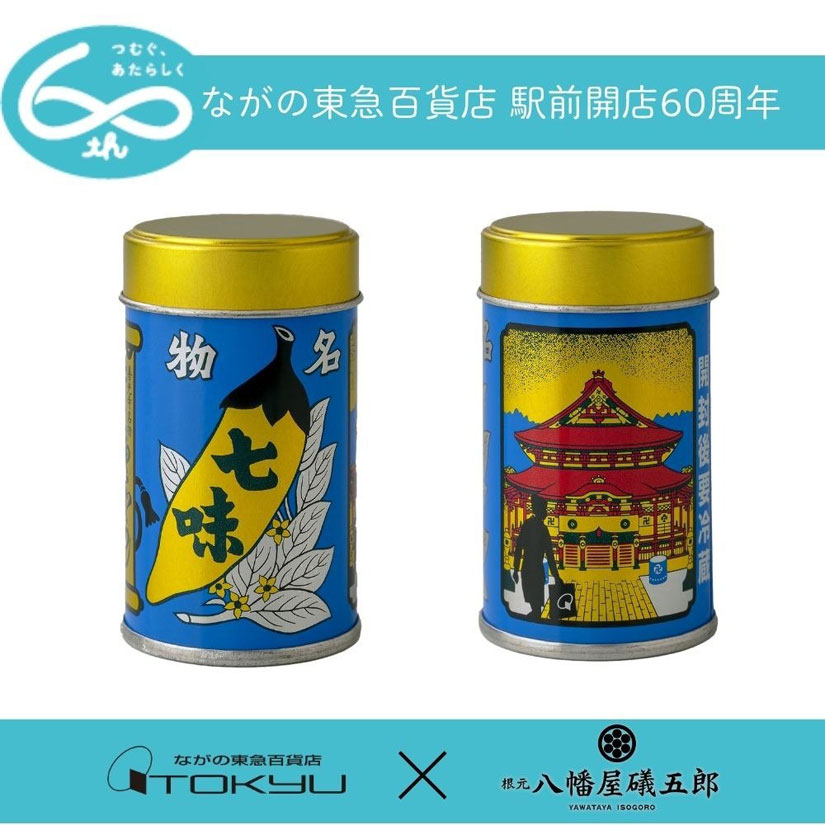 ”ながの東急百貨店駅前開店60周年企画”として、八幡屋礒五郎とコラボレートした七味缶が復刻!古来不変、独特の製法による「七味唐からし」は、かつて、”ながの東急駅前40周年”を迎えた際に作られたというオリジナル缶。ながの東急百貨店×八幡屋磯五郎のコラボ第一弾商品です。