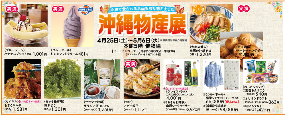 長野駅前の「ながの東急百貨店」で、『沖縄物産展』がゴールデンウィーク期間中の2026年4月25日(土)~5月6日(水)に開催。
